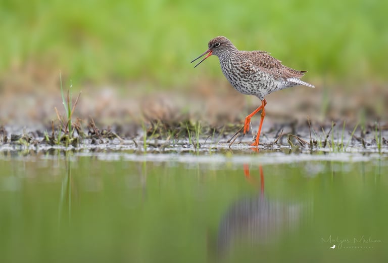 Největší radost jsem měl z fotek, které se mi podařily pořídit na mokřadu, který mě velice zaujal. Hlavním důvodem, proč jsem se na mokřadu rozhodl fotit, byla krásně zrcadlící se hladina. Skromně si troufnu říct, že se jedná o jedny z nejpovedenějších fotek bahňáků, které se mi kdy podařily pořídit.