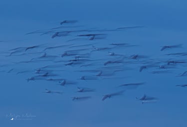 I tak jsem byl nadšený, protože něco takového jsem ještě nikdy předtím nezažil. Tisíce a tisíce jeřábů se postupně slétávaly po celý večer do vody a troubení se ozývalo ze všech stran. Byli jsme přímo v centru dění. Tohle člověk jen tak neuvidí...